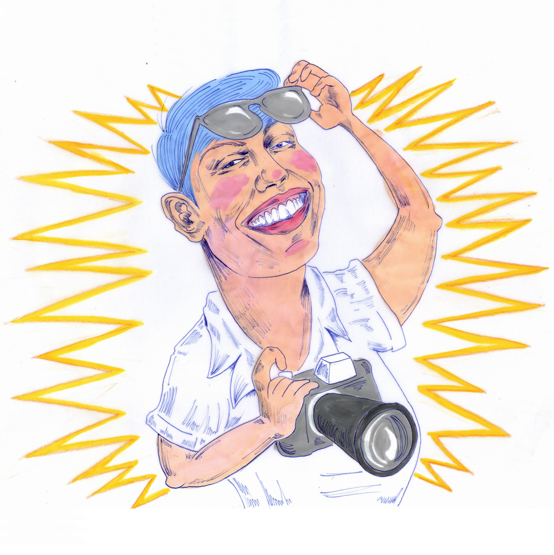 This cartoon styled illustration presents Luiza's fun personality. Her brightening presence and easy smile are her most remarkable features, not to mention her insaciable disposal for hard work without ever giving up style.