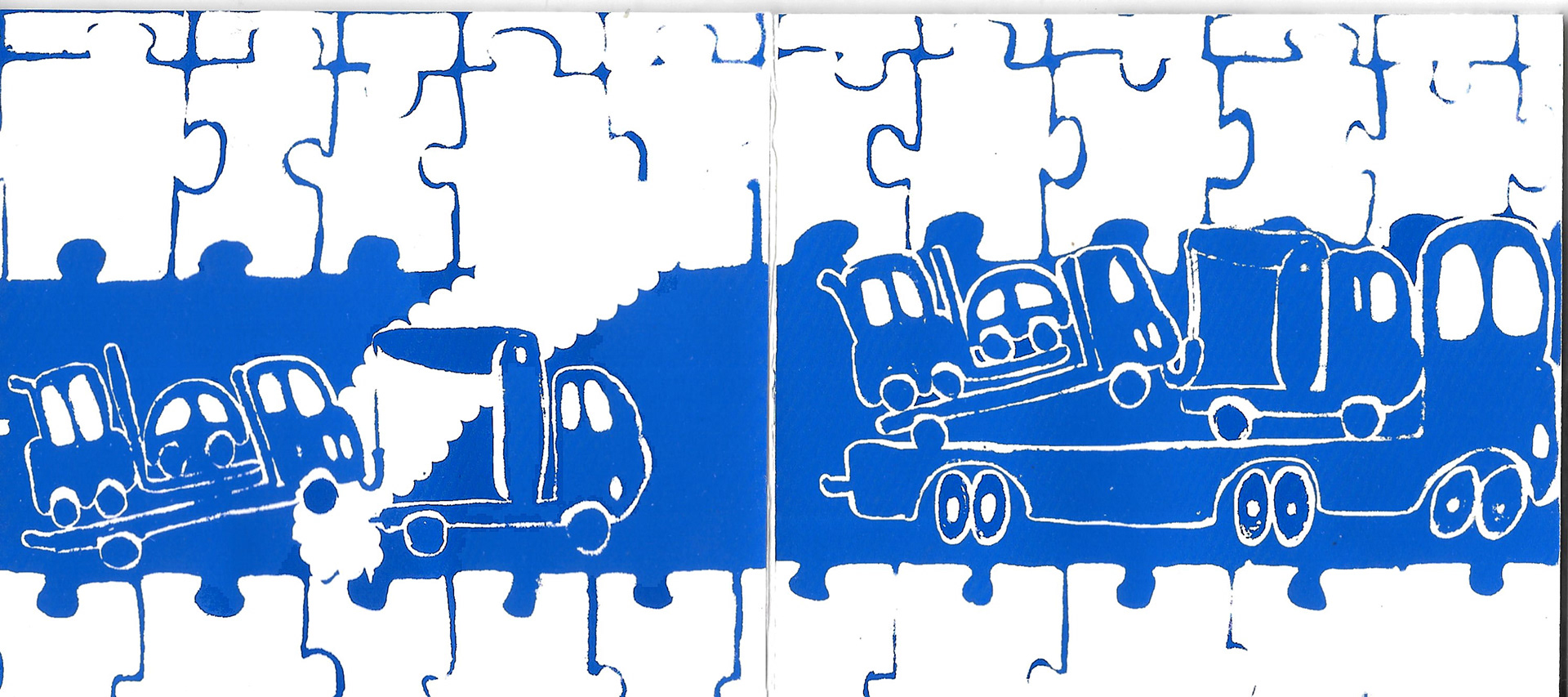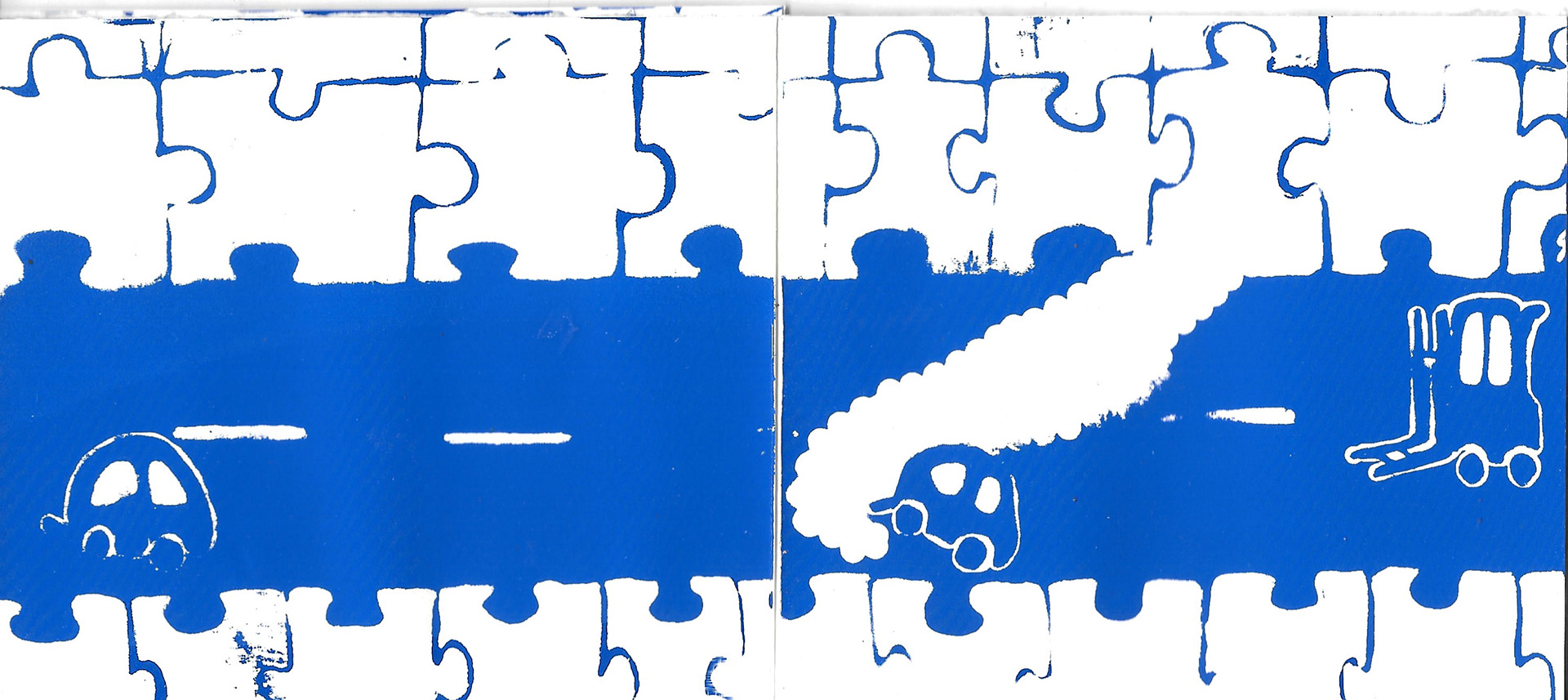 Silk screen printing experiment of an illustrated leporello zine.